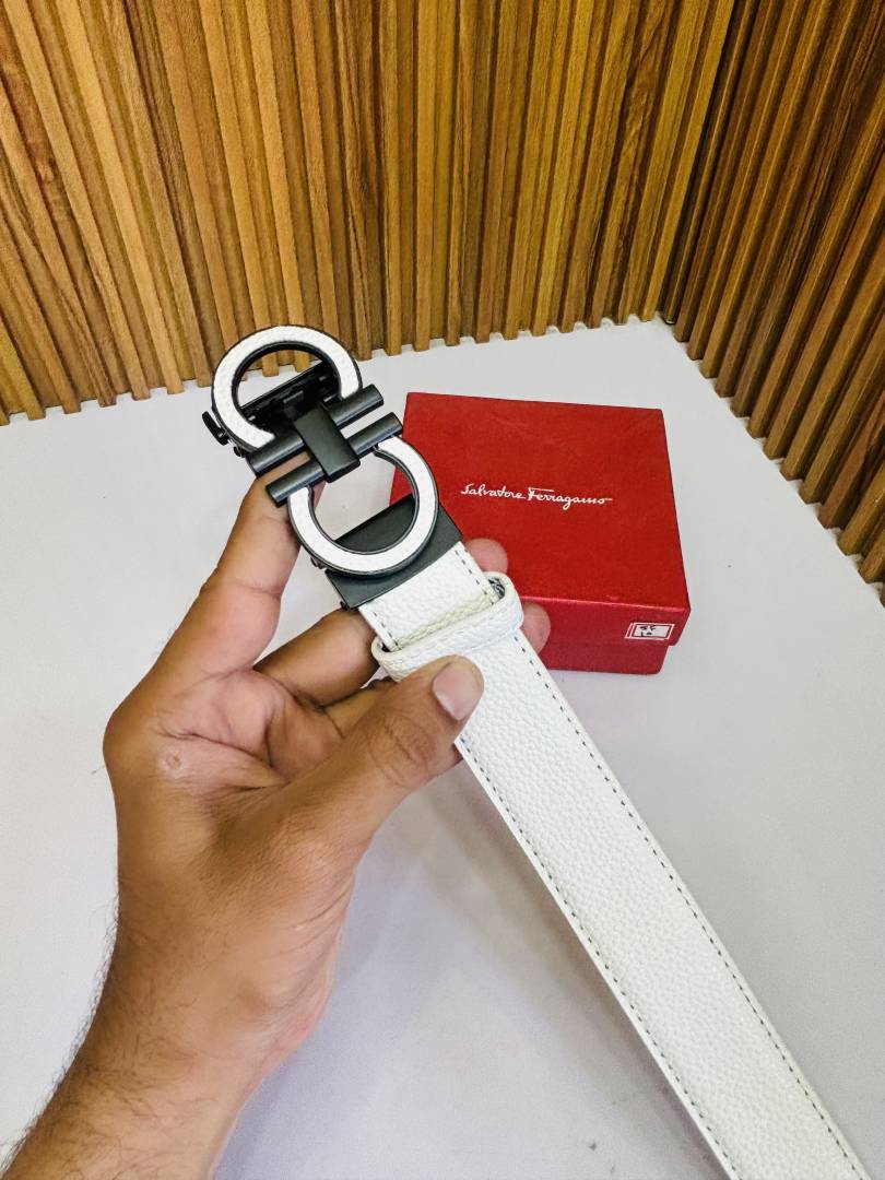 10 SF SALVATORE FERRAGAM_O WHITE PREMIUM QUALITY AUTOMATIC LOCK BELT