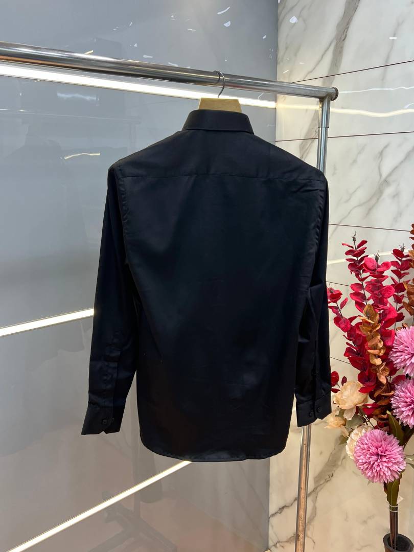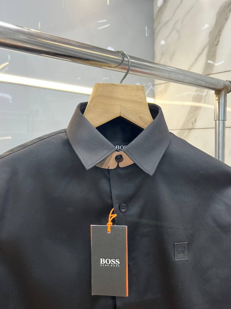 Hugo Bos s Black Premium Imported Cotton Lycra Fabric Patch Logo Shirt with custom Branded Button Tagging And Brand Packing 3872