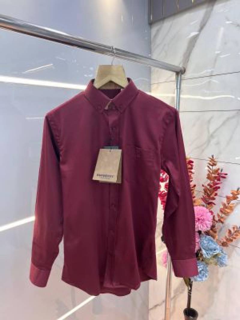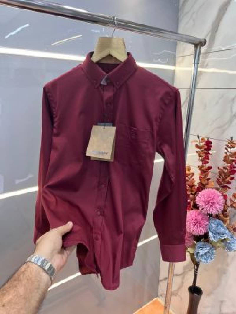Burberr y Maroon Premium Imported Embroidered Logo Shirt with custom Branded Button Tagging And Brand Packing 3249