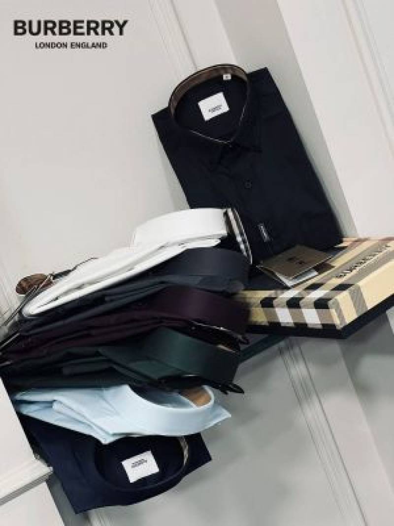 Burberr y Beige Premium Imported Embroidered Logo Shirt with custom Branded Button Tagging And Brand Packing 3253