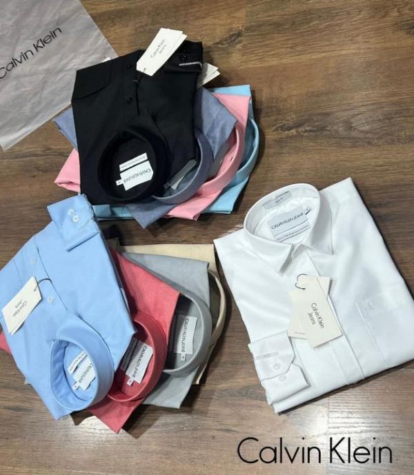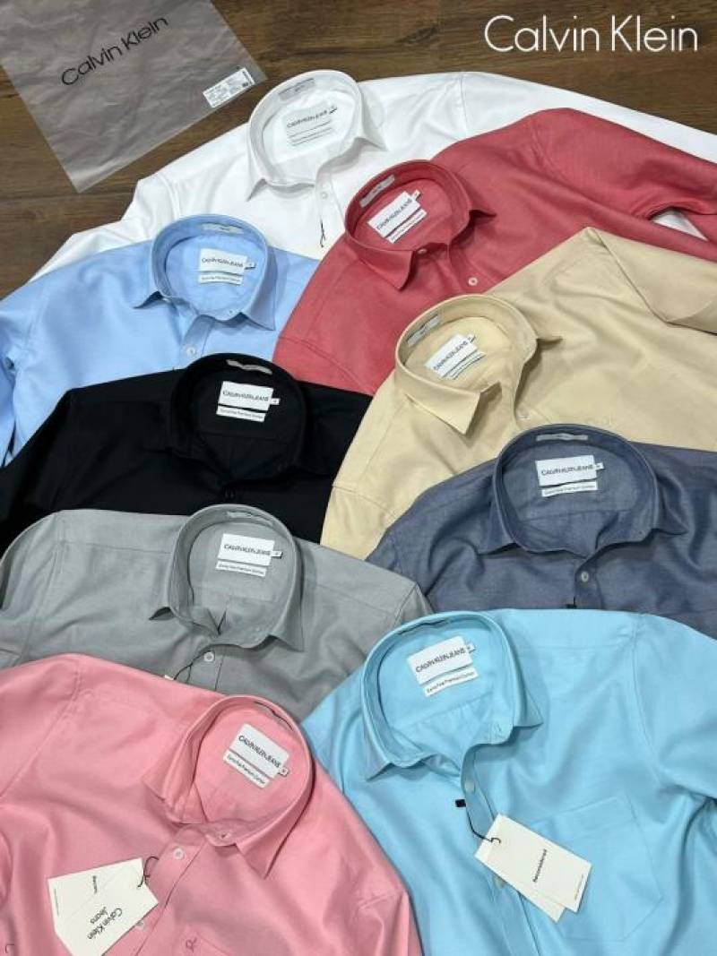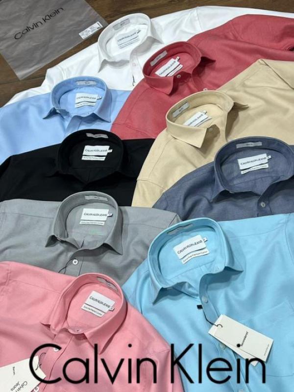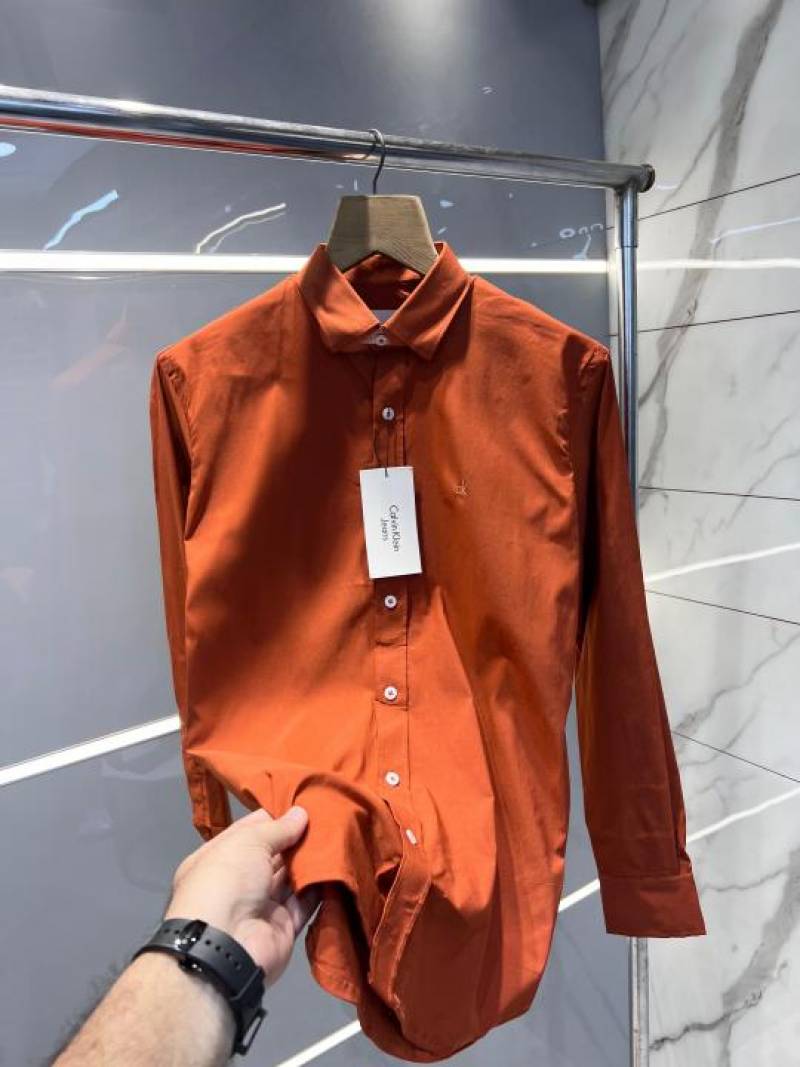 Calvin Klei n Red Imported Premium Shirt Cotton Lycra With Embroidered Logo and custom Branded Button Tagging And Brand Poly Bag 2972