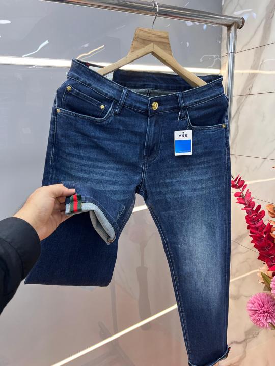Gucc i Dark shade imported lycra slim fit ankle lenght hyperflex denim with Metal Logo 3128