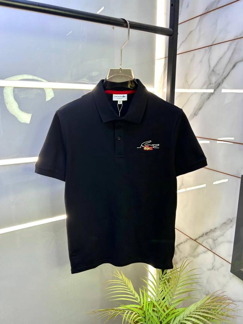 Lacost e Black Polo Premium Collar Neck T-shirt F3392-B2