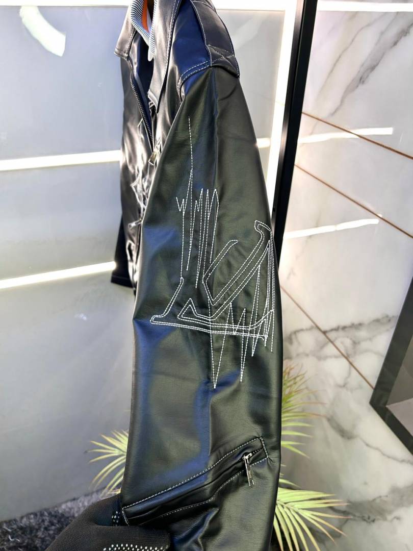 Louis_Vuitton Imported Super Premium Black Leather Zipper Jacket F3183-BL