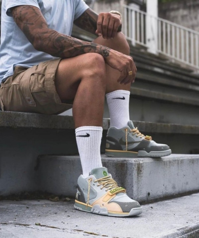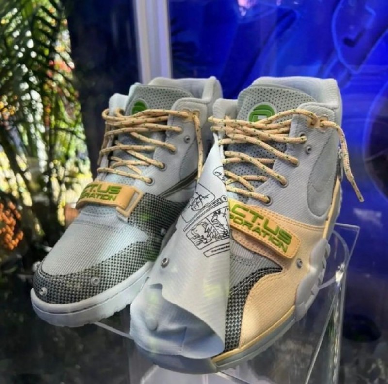 Nik e Air Trainer 1 Travis Scott Aqua Grey