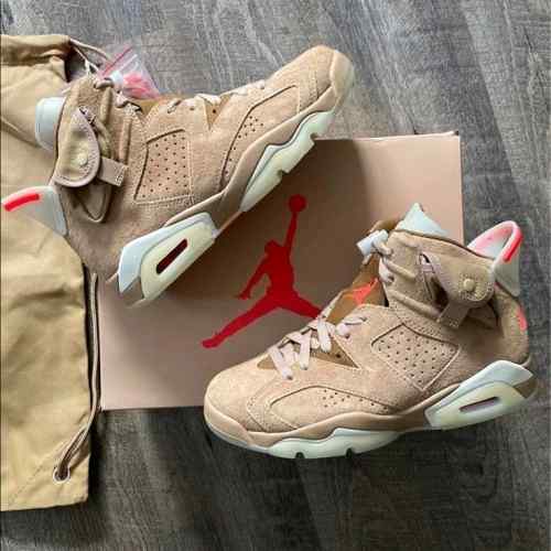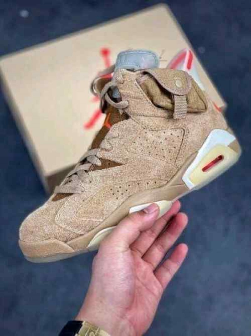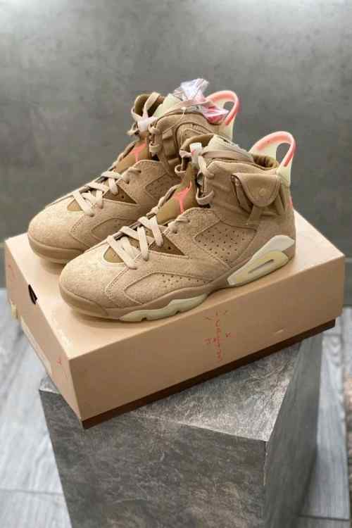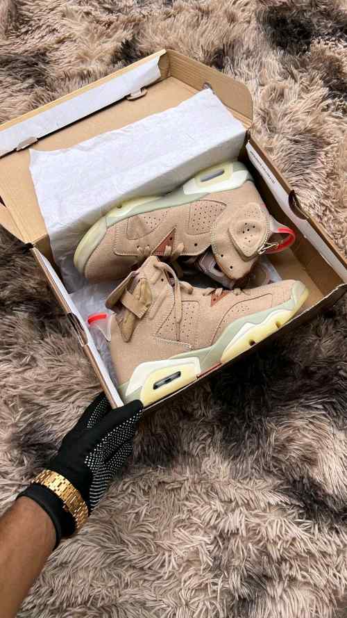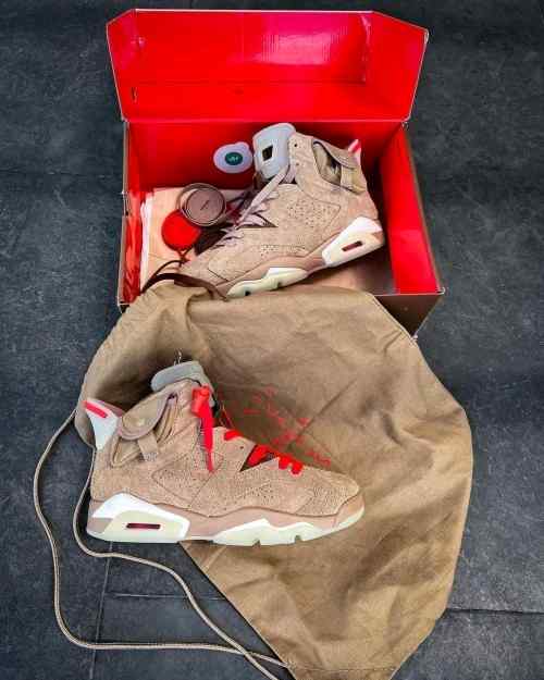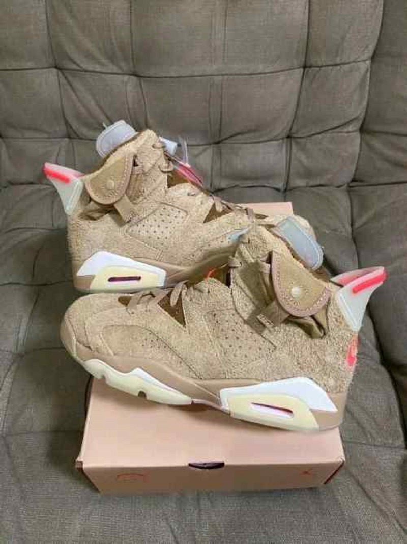 Nikee Air Jordan Retro 6 x Travis Scott British Khaki Top SEMI UA Batch SEUDE with og box dustbag