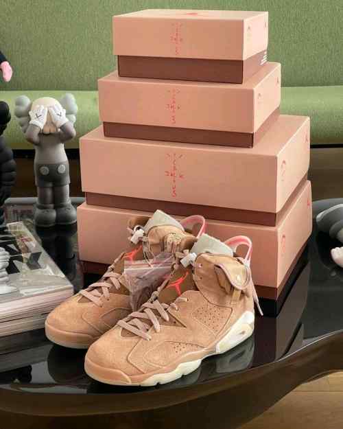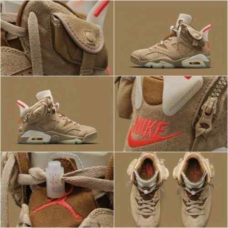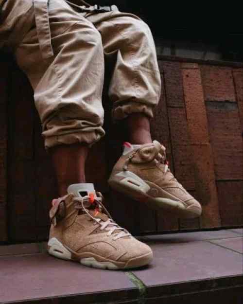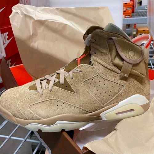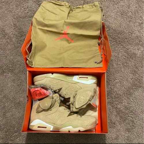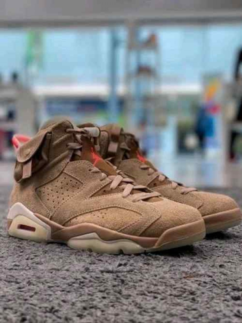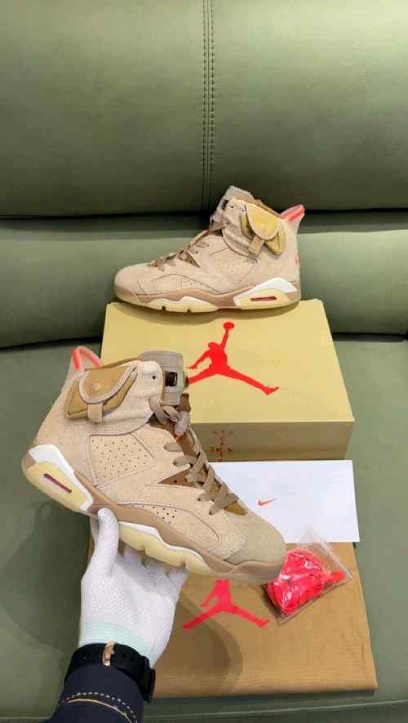 Nikee Air Jordan Retro 6 x Travis Scott British Khaki Top SEMI UA Batch SEUDE with og box dustbag