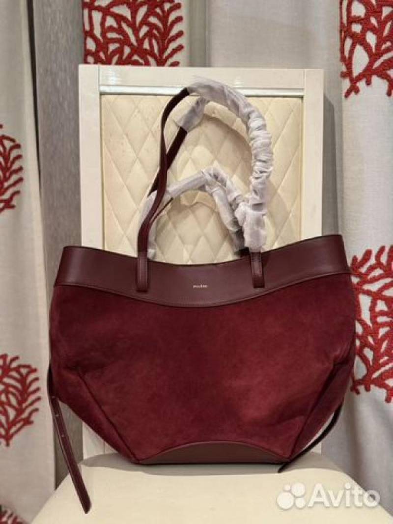 Polene Cyme Dual-Texture Leather Shoulder Bag With Dust Bag (Wine)