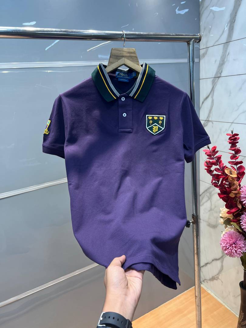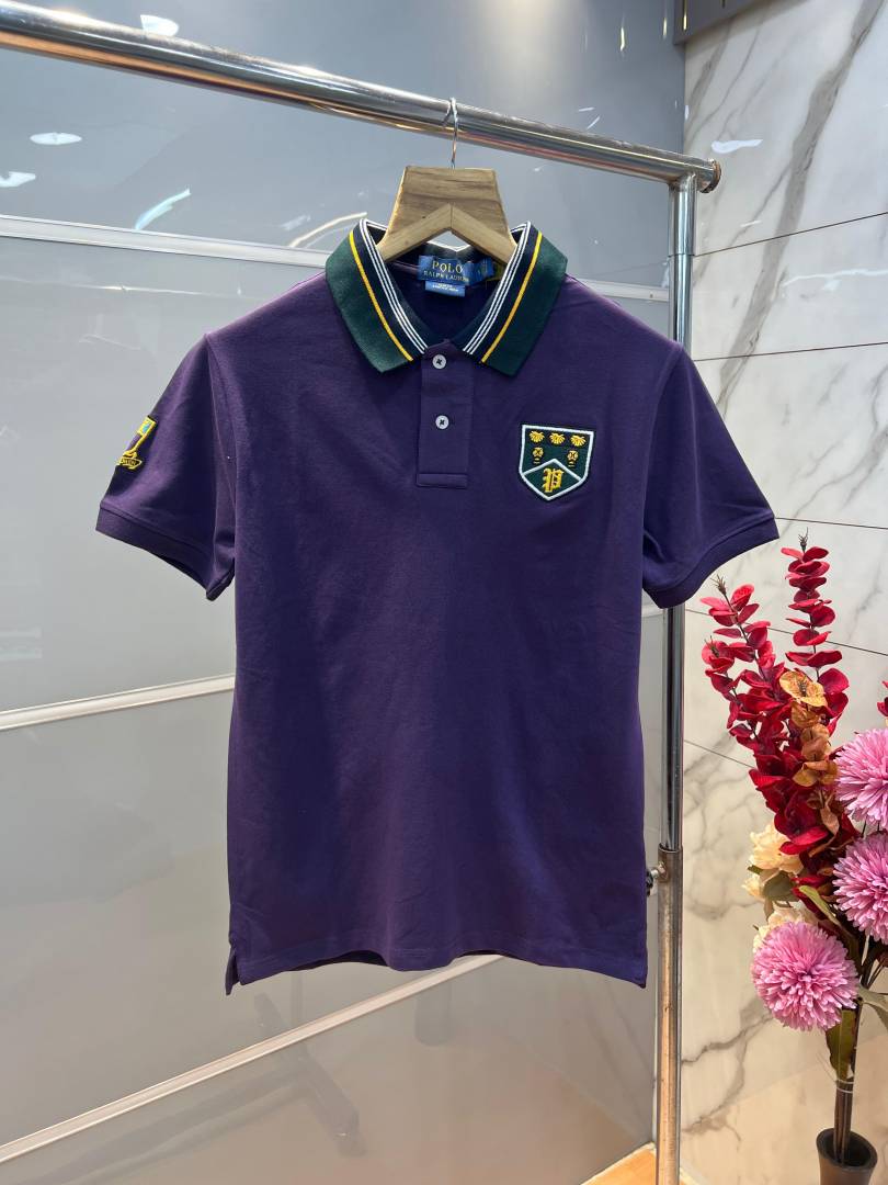 Ralp h Lauren Purple Premium Cotton Pique fabric Polo Tshirt with Collar Design and Embroidered Logo 4091