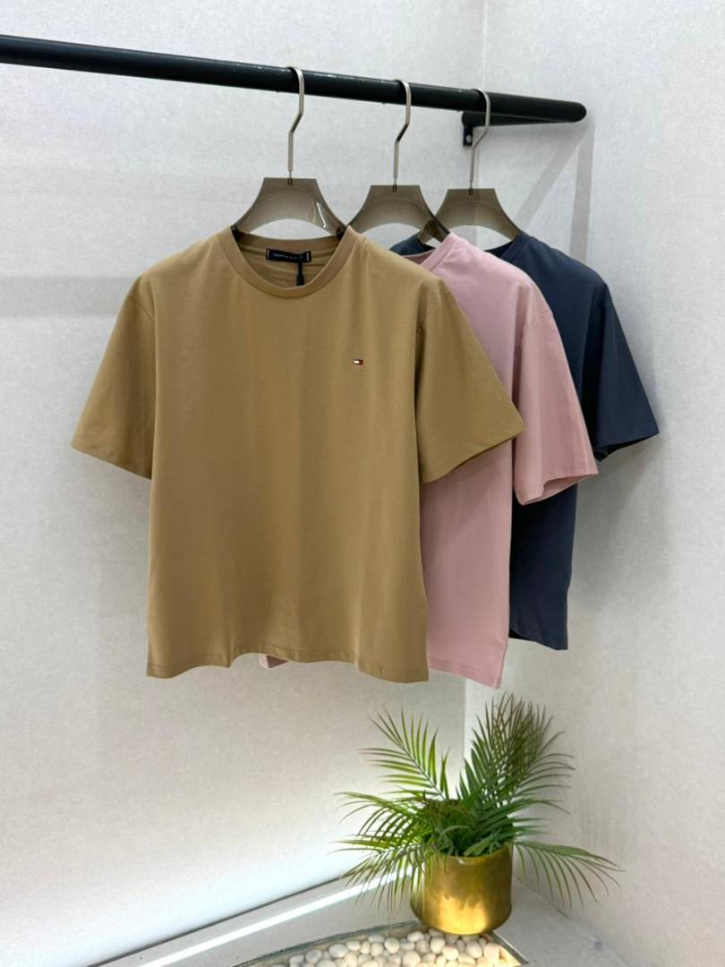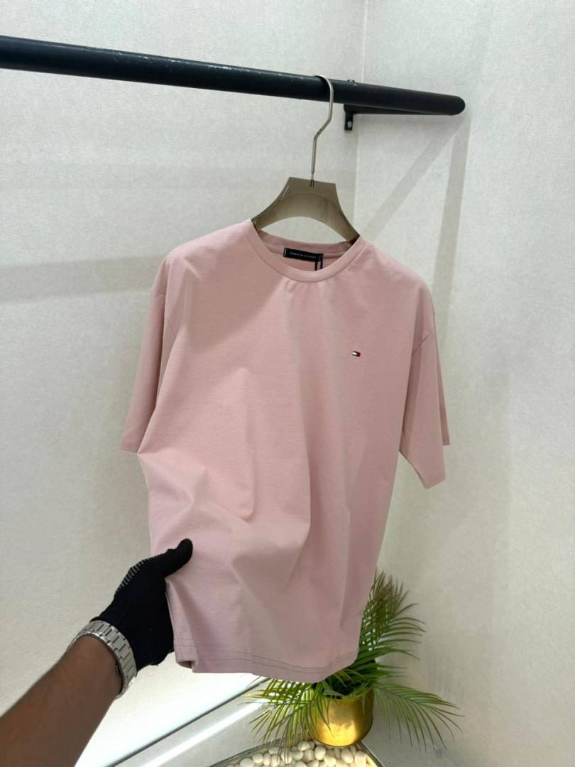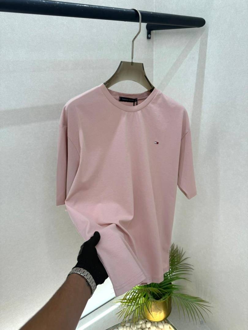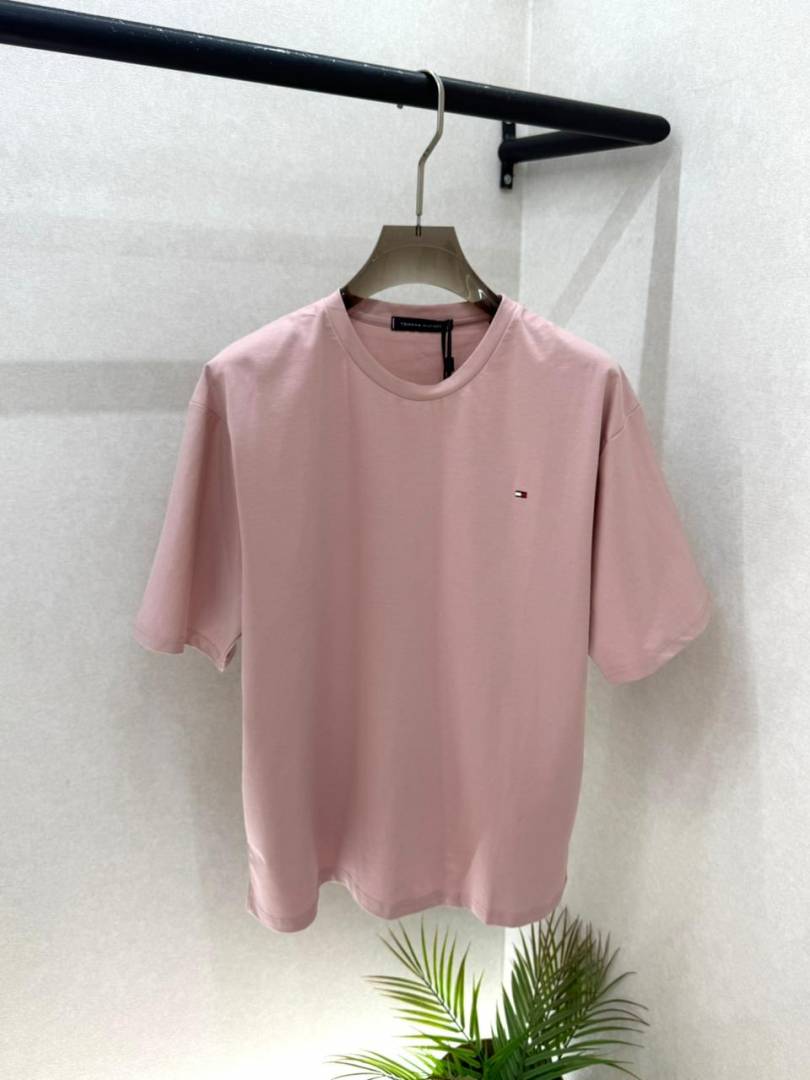 Tommy_Hilfiger Pink Premium Drop Shoulder Round Neck T-shirt With Brand Box Packing F3583-PI