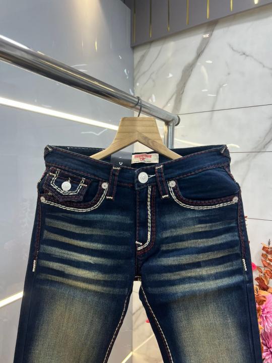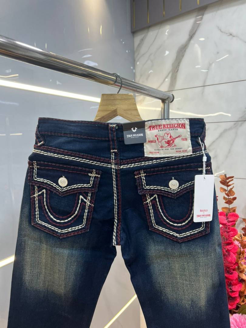 True Religion Blue shade Straight fit Premium Imported Stretchable Lycra Fabric Denim with Back Pocket Embroidered Design 3952