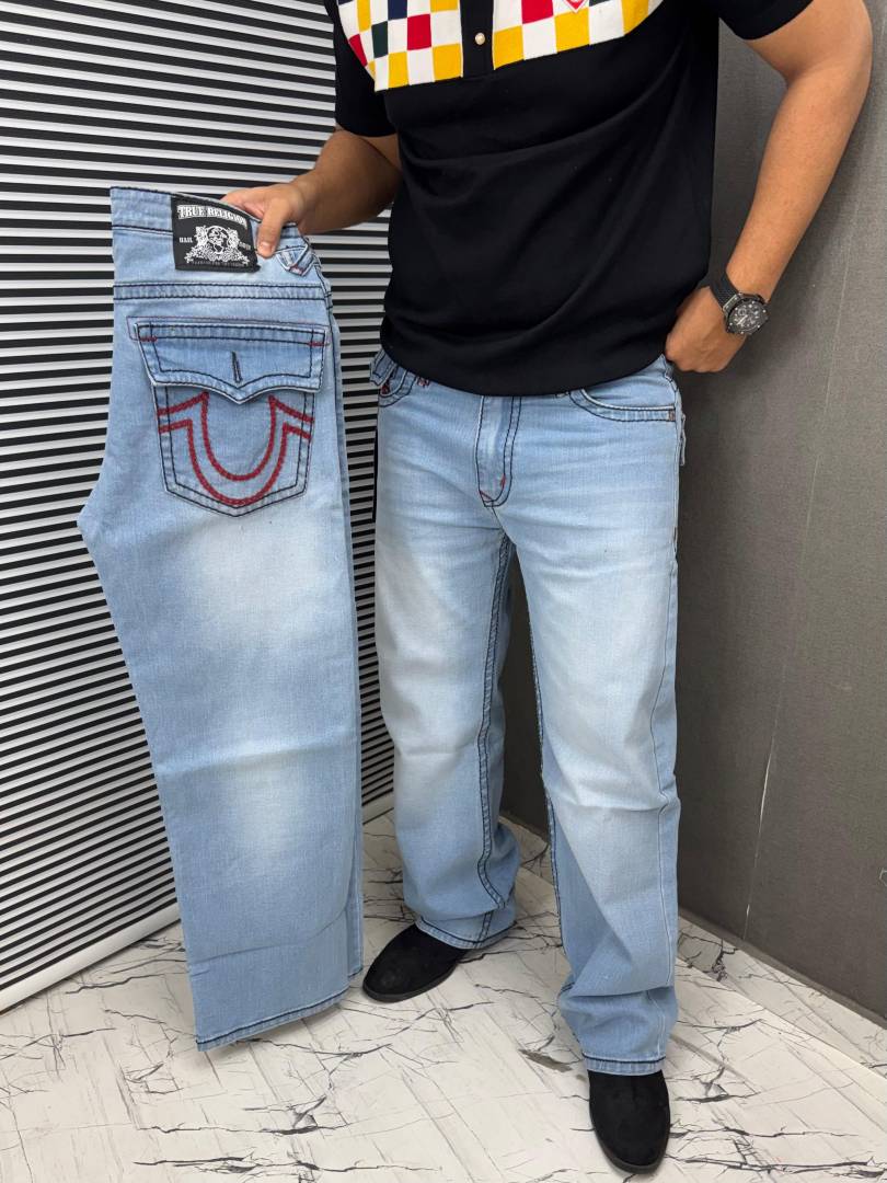 True Religion Light Blue 100% Imported Latest Store Article Very Premium Baggy Jeans 477